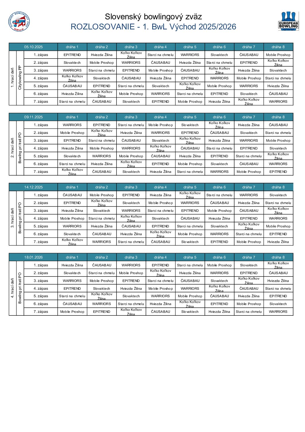 Dňa 5. 10. 2025 začína úvodným kolom 1. liga trojčlenných družstiev SBwZ 2025/2026 divízie východ a divízie západ.