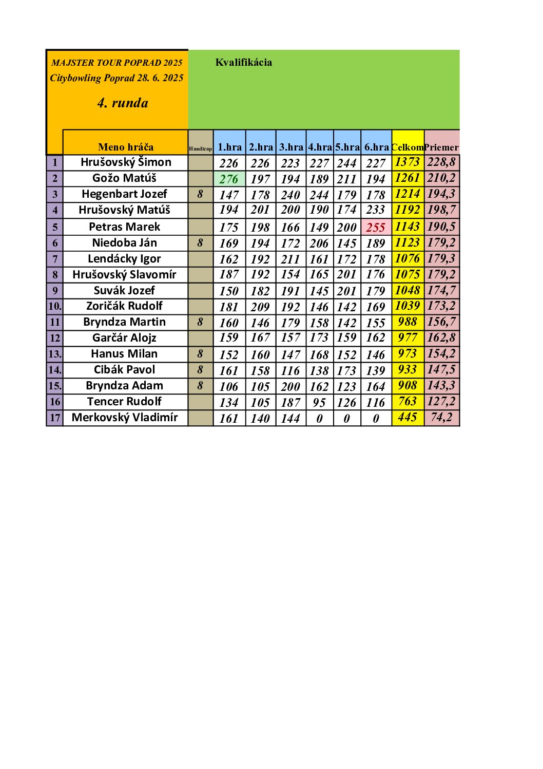 MAJSTER TOUR POPRAD 2025 – 4. vbýsledky rundy