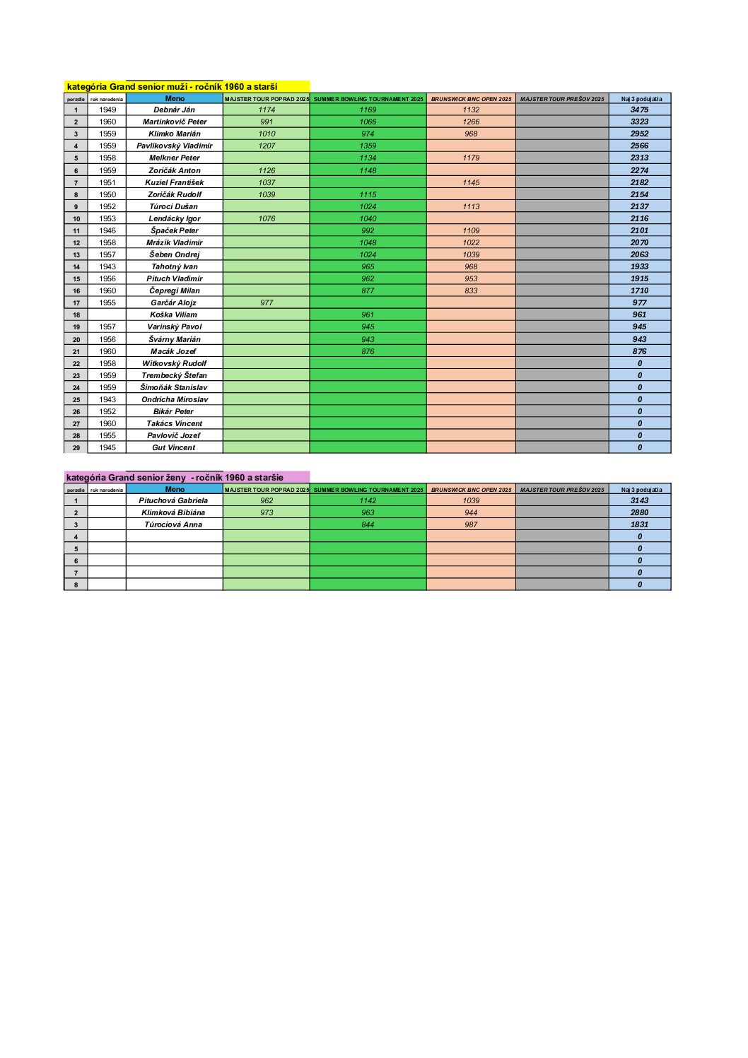 Navigácia v článku Priebežné poradie GRAND SENIOR MAJSTER TOUR 2025 po 3. podujatí série BRUNSWICK BNC OPEN 2025