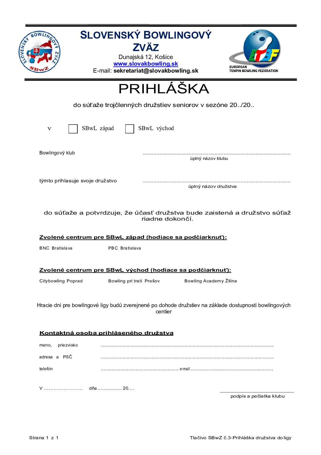 Navigácia v článku Úprava posudzovania vekovej hranice Seniorskej ligy!!! Prihlášky a súpisky do nového ročníka Seniorskej bowlingovej ligy trojčlenných družstiev SBwZ 2024/2025