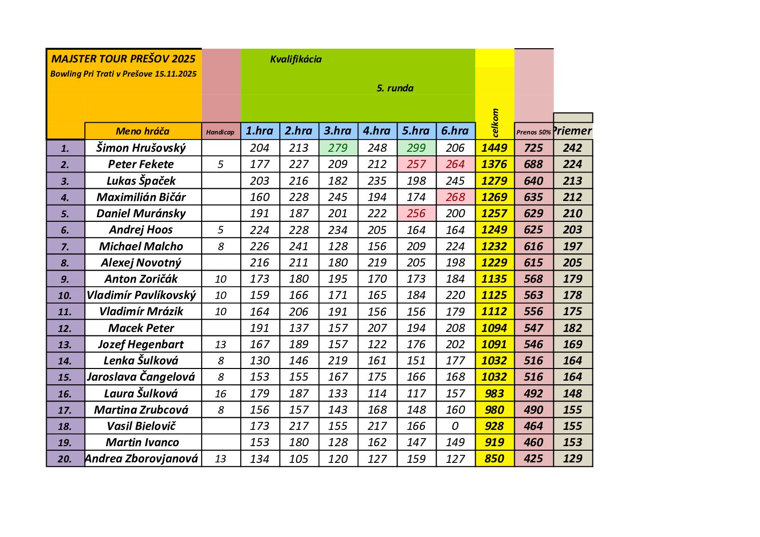 MAJSTER TOUR PREŠOV 2025 5. runda