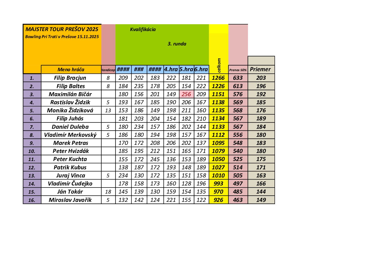 MAJSTER TOUR PREŠOV 20253- 3.runda