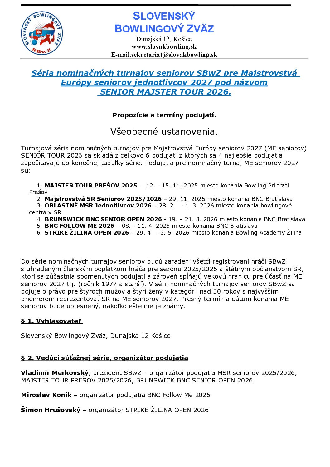 Propozície Seniori